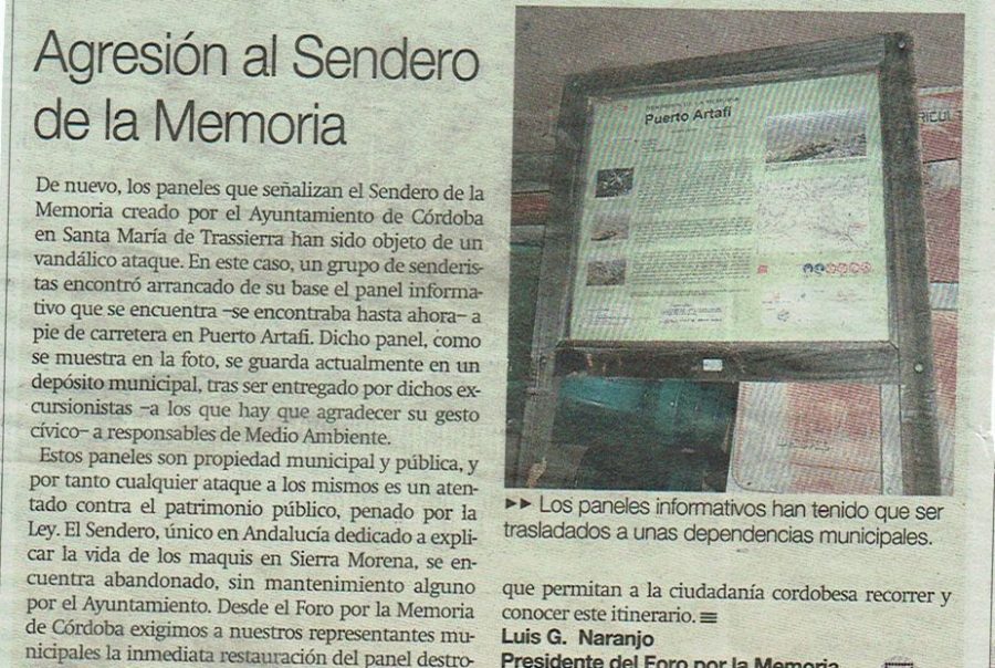 Agresión al Sendero de la Memoria